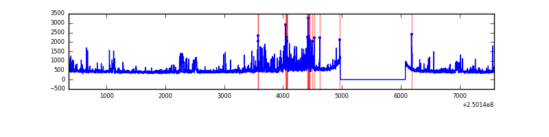 Red curve is a Poisson curve with rate = median count rate of data. |