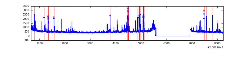 Red curve is a Poisson curve with rate = median count rate of data. |