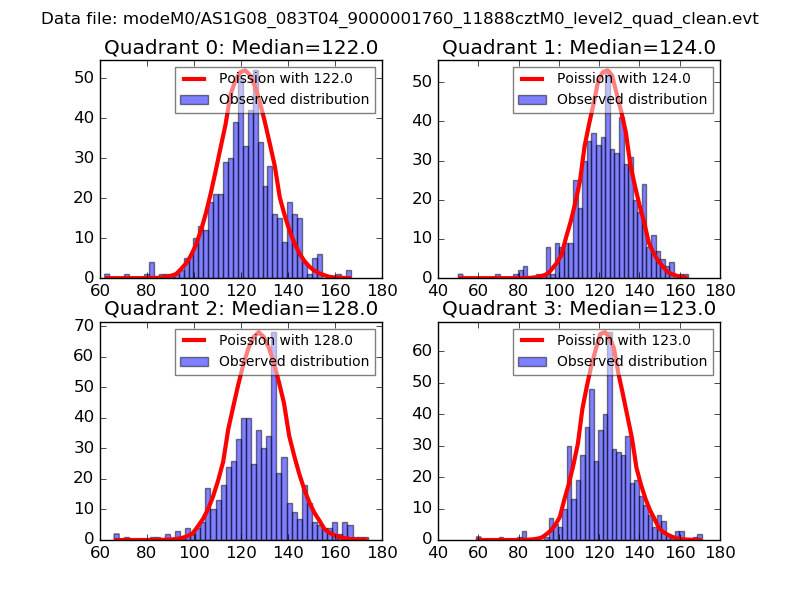 Red curve is a Poisson curve with rate = median count rate of data. |