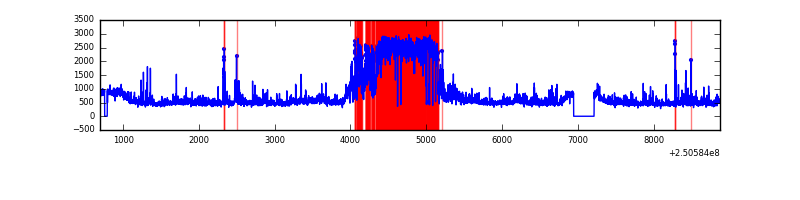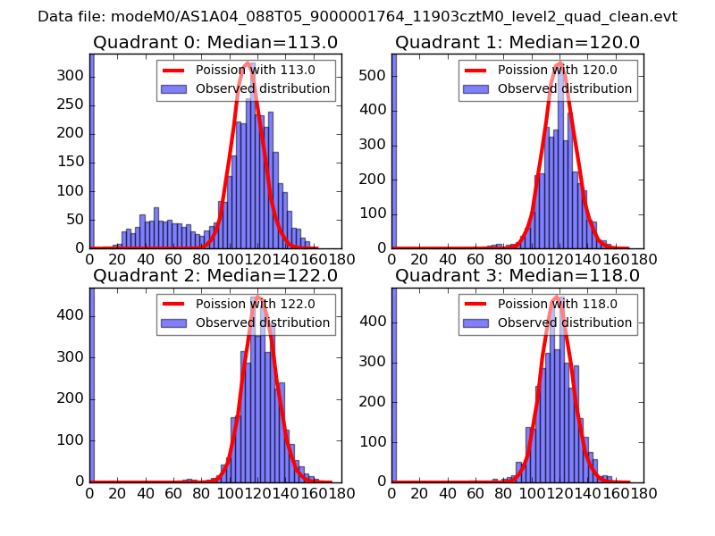 Red curve is a Poisson curve with rate = median count rate of data. |
