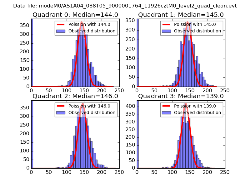 Red curve is a Poisson curve with rate = median count rate of data. |