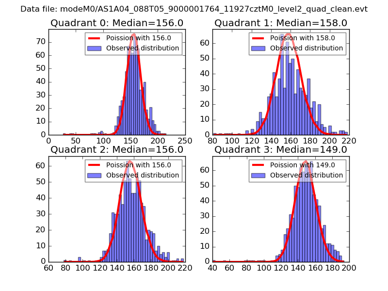Red curve is a Poisson curve with rate = median count rate of data. |