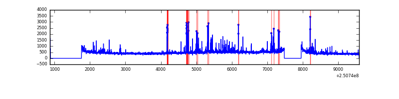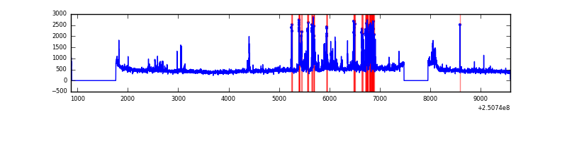 Red curve is a Poisson curve with rate = median count rate of data. |