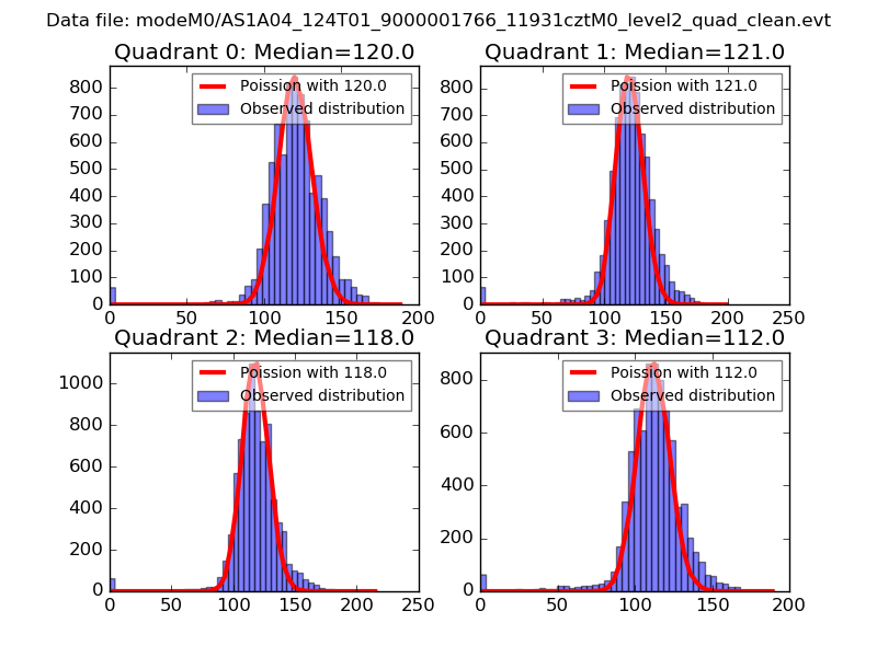 Red curve is a Poisson curve with rate = median count rate of data. |