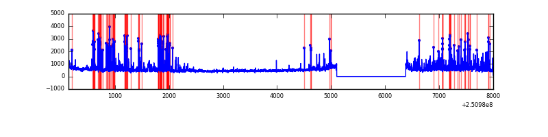 Red curve is a Poisson curve with rate = median count rate of data. |