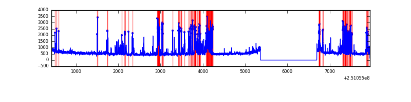 Red curve is a Poisson curve with rate = median count rate of data. |