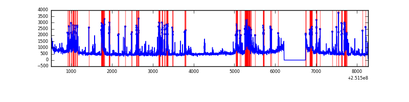Red curve is a Poisson curve with rate = median count rate of data. |