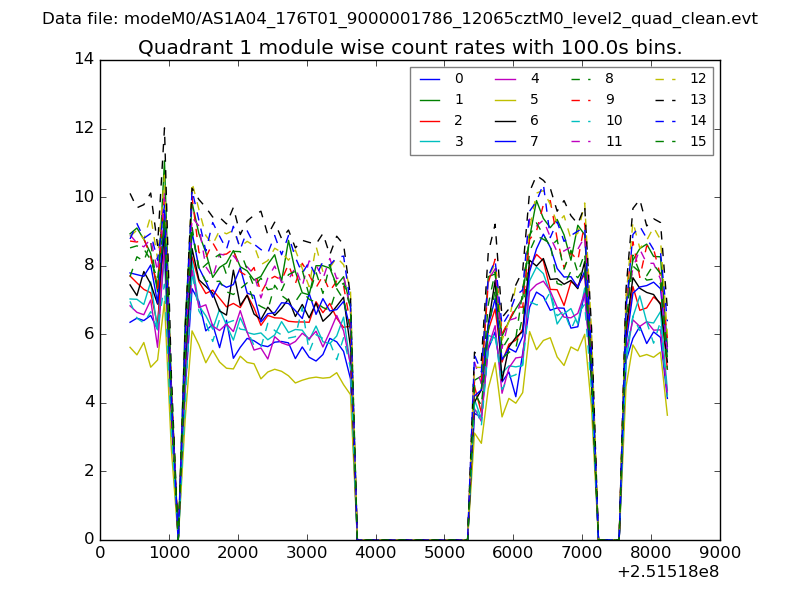 Module-wise count rates for Quadrant A