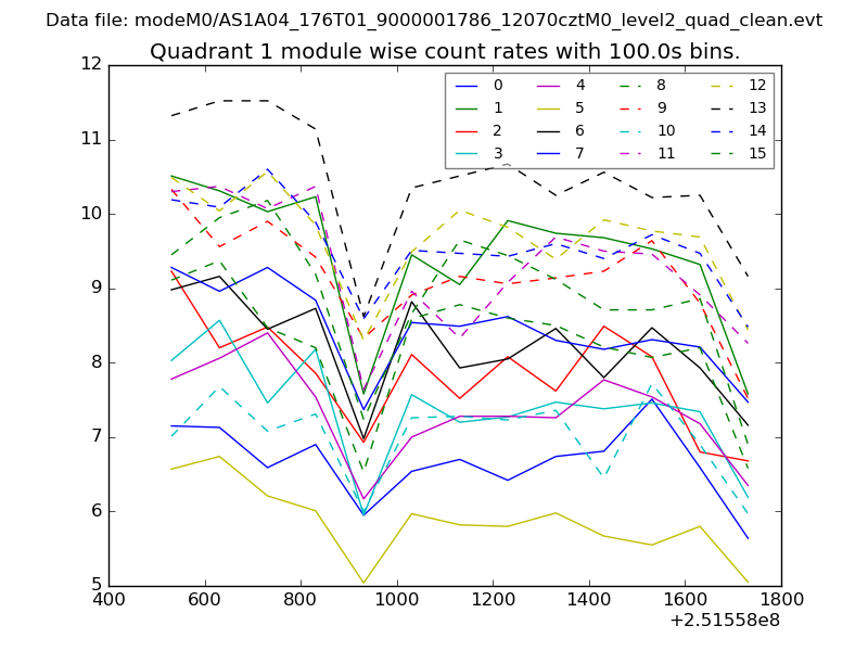 Module-wise count rates for Quadrant A