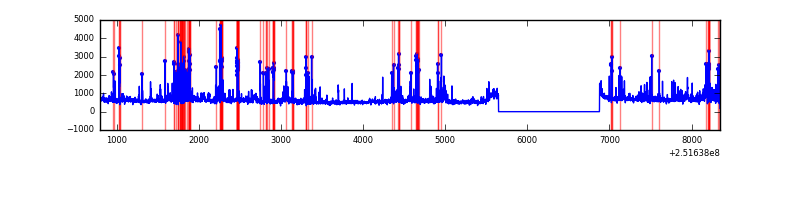 Red curve is a Poisson curve with rate = median count rate of data. |