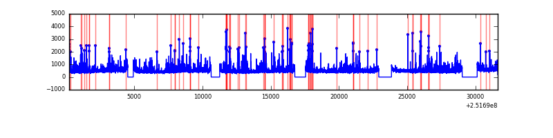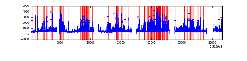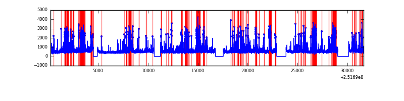 Red curve is a Poisson curve with rate = median count rate of data. |