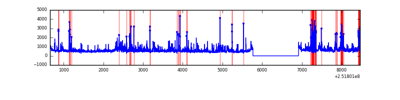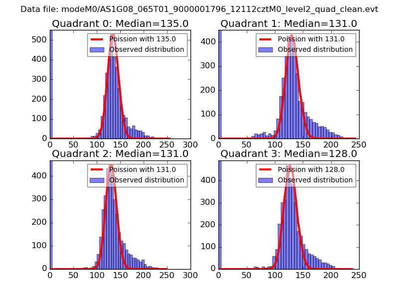 Red curve is a Poisson curve with rate = median count rate of data. |
