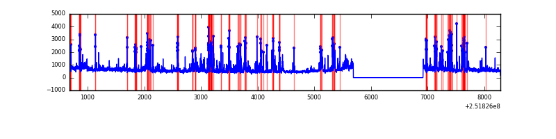 Red curve is a Poisson curve with rate = median count rate of data. |