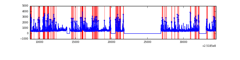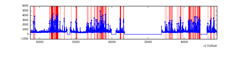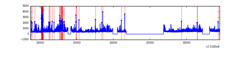 Red curve is a Poisson curve with rate = median count rate of data. |