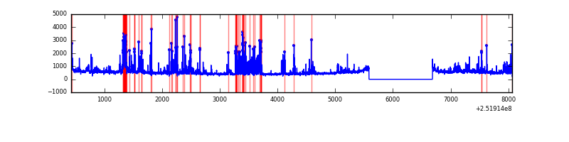 Red curve is a Poisson curve with rate = median count rate of data. |