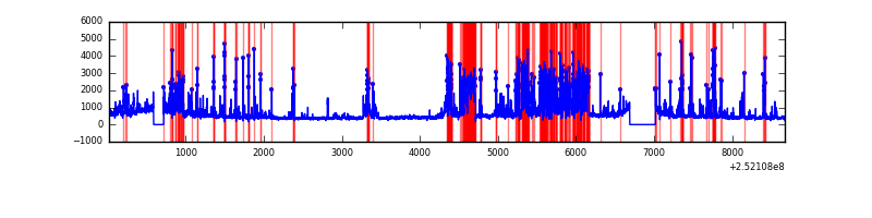 Red curve is a Poisson curve with rate = median count rate of data. |