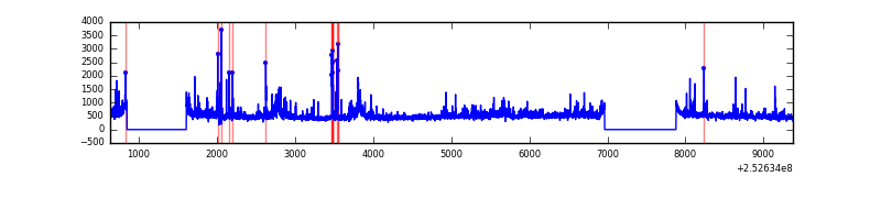 Red curve is a Poisson curve with rate = median count rate of data. |