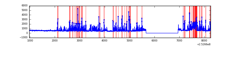 Red curve is a Poisson curve with rate = median count rate of data. |