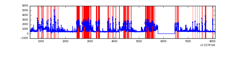 Red curve is a Poisson curve with rate = median count rate of data. |