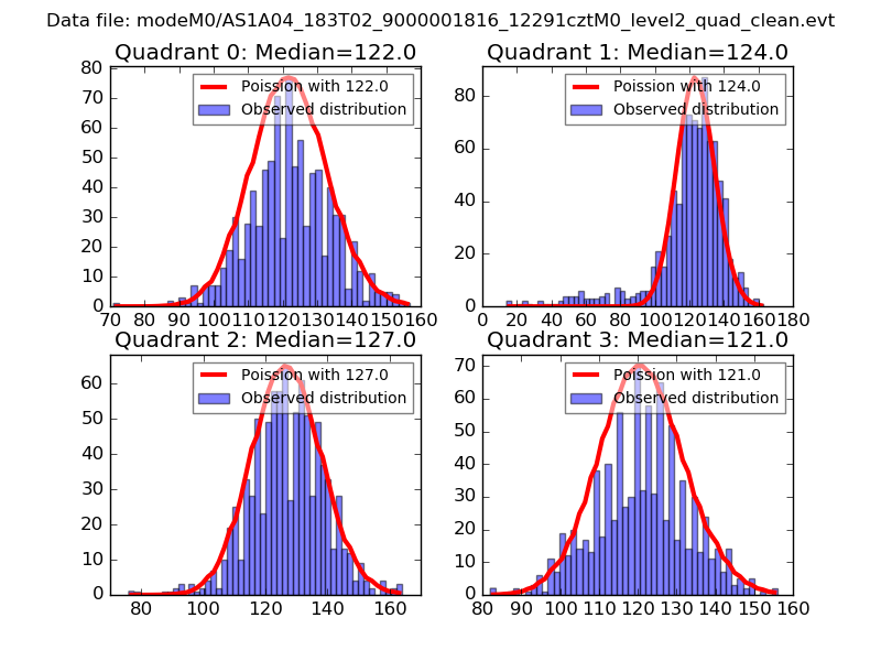 Red curve is a Poisson curve with rate = median count rate of data. |