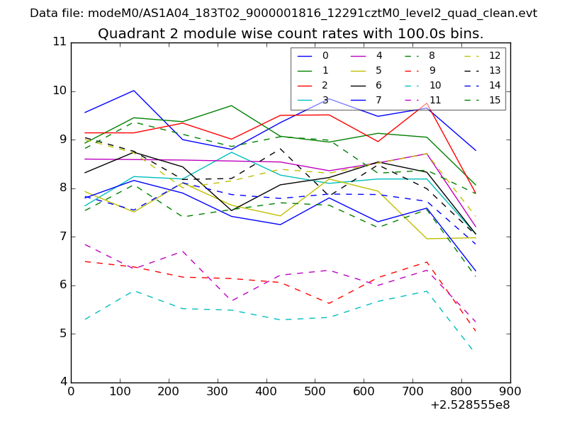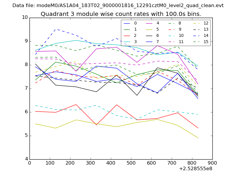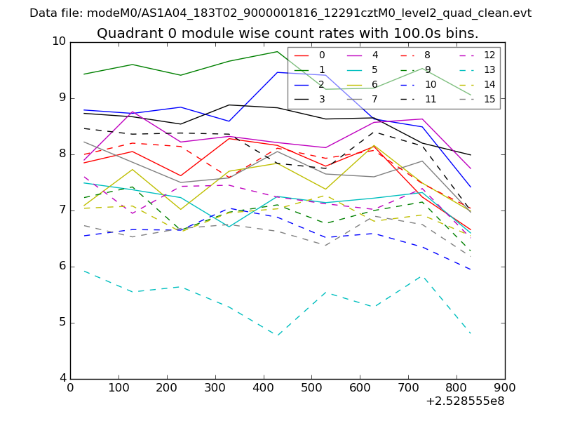 Module-wise count rates for Quadrant A