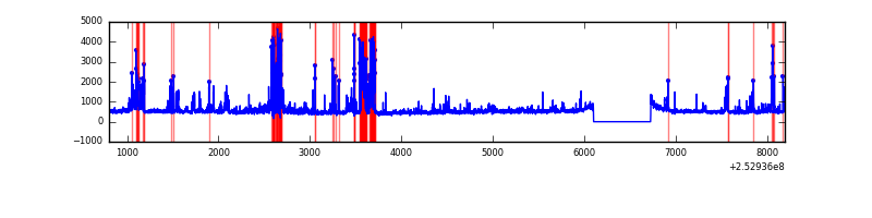 Red curve is a Poisson curve with rate = median count rate of data. |