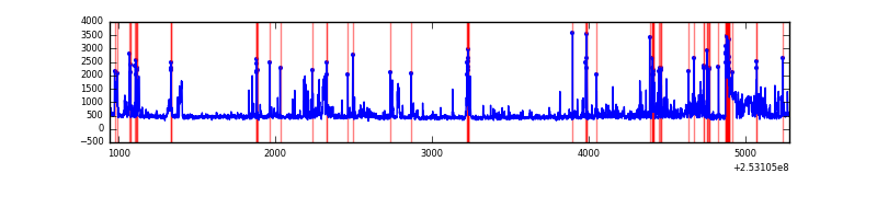 Red curve is a Poisson curve with rate = median count rate of data. |