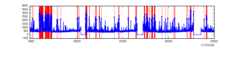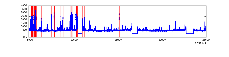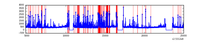 Red curve is a Poisson curve with rate = median count rate of data. |