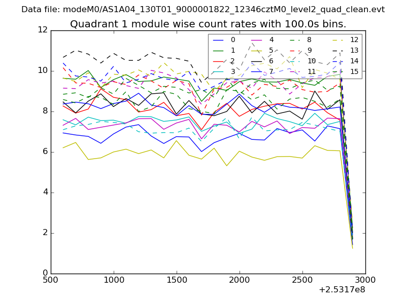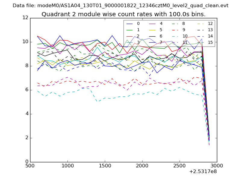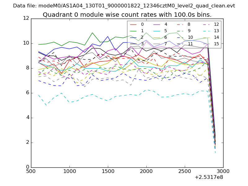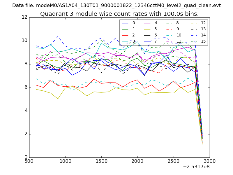 Module-wise count rates for Quadrant A