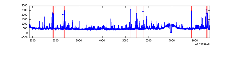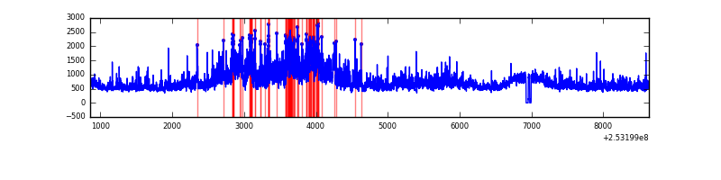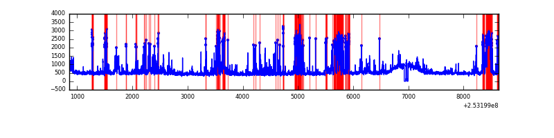 Red curve is a Poisson curve with rate = median count rate of data. |