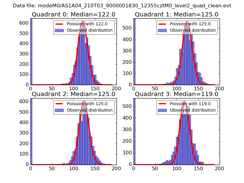 Red curve is a Poisson curve with rate = median count rate of data. |