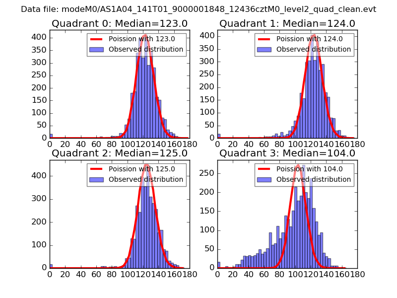 Red curve is a Poisson curve with rate = median count rate of data. |