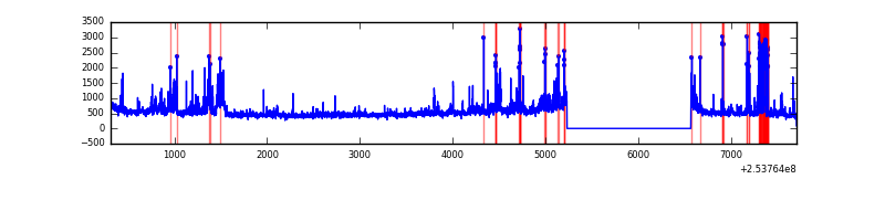Red curve is a Poisson curve with rate = median count rate of data. |