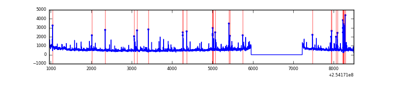 Red curve is a Poisson curve with rate = median count rate of data. |