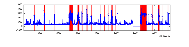 Red curve is a Poisson curve with rate = median count rate of data. |