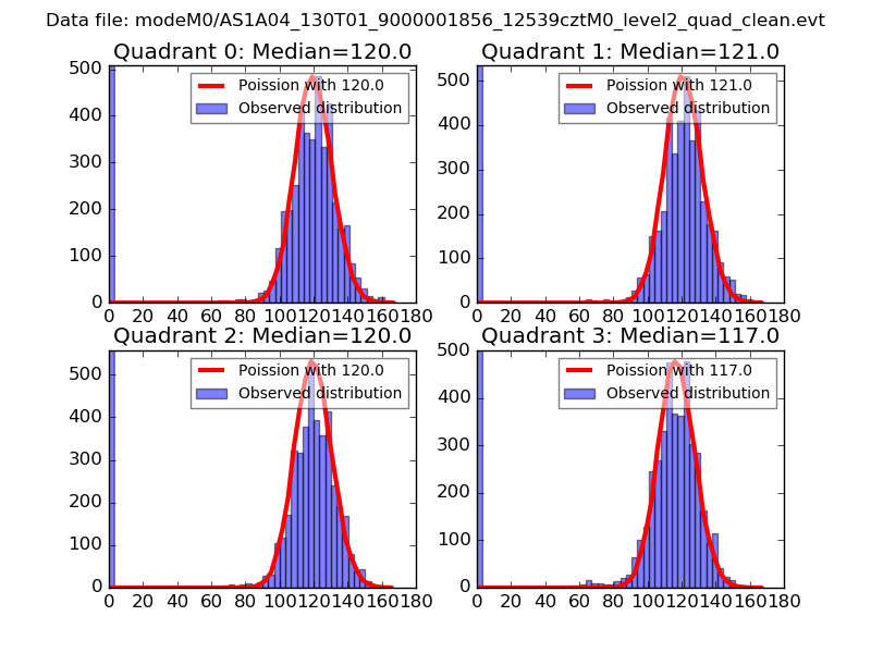 Red curve is a Poisson curve with rate = median count rate of data. |