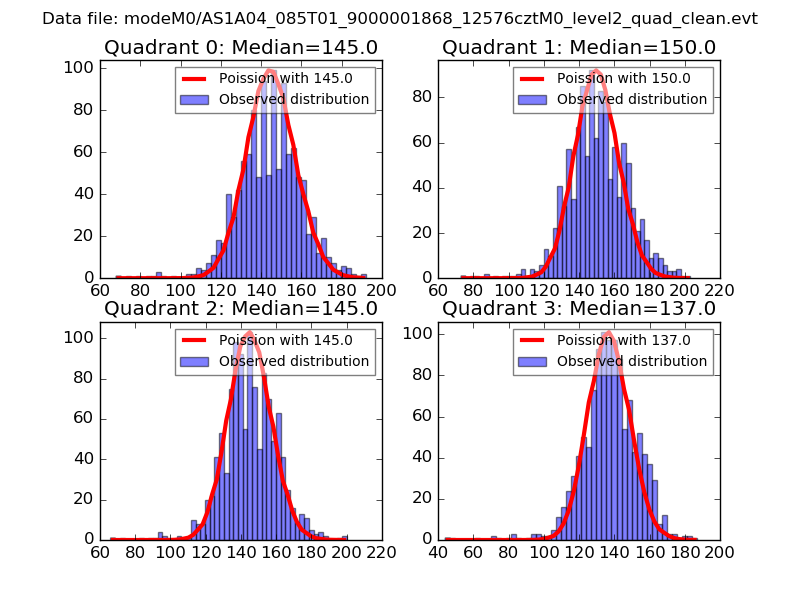 Red curve is a Poisson curve with rate = median count rate of data. |