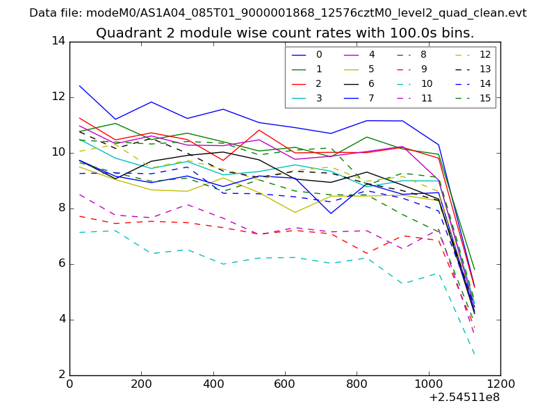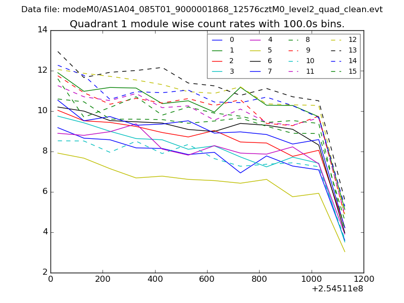 Module-wise count rates for Quadrant A