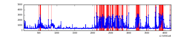 Red curve is a Poisson curve with rate = median count rate of data. |