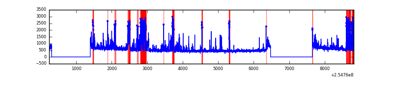 Red curve is a Poisson curve with rate = median count rate of data. |