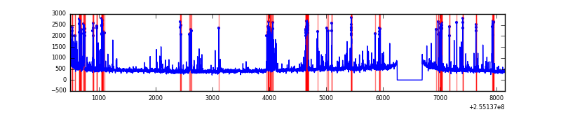 Red curve is a Poisson curve with rate = median count rate of data. |