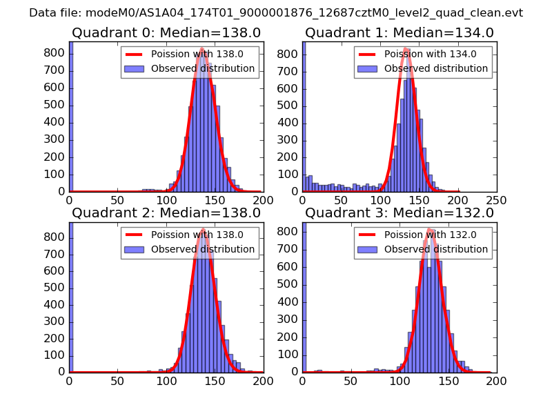 Red curve is a Poisson curve with rate = median count rate of data. |