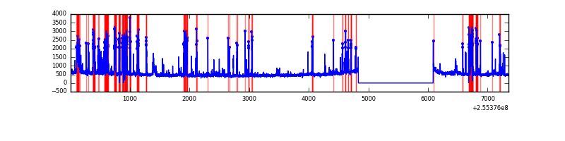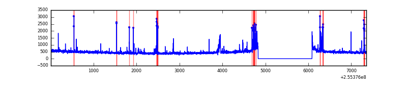 Red curve is a Poisson curve with rate = median count rate of data. |