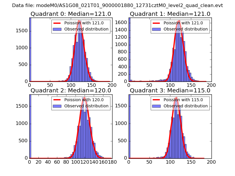 Red curve is a Poisson curve with rate = median count rate of data. |