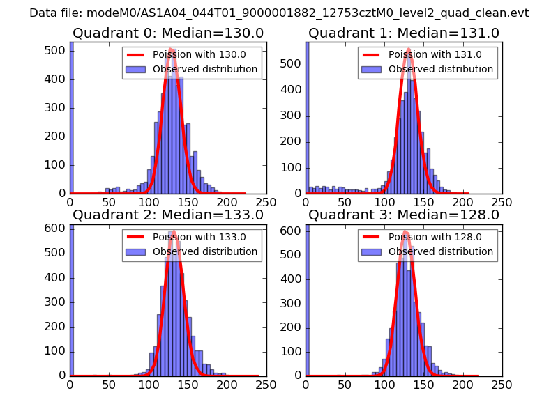Red curve is a Poisson curve with rate = median count rate of data. |