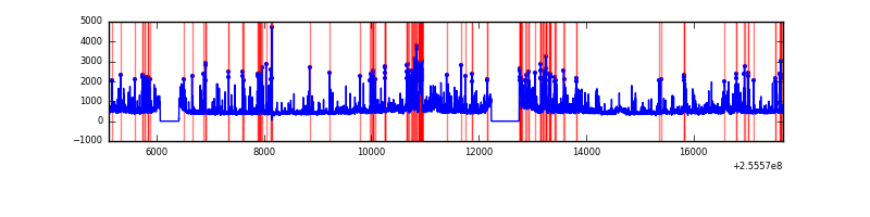 Red curve is a Poisson curve with rate = median count rate of data. |