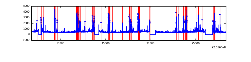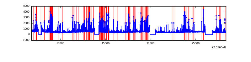 Red curve is a Poisson curve with rate = median count rate of data. |