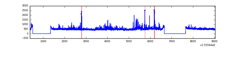 Red curve is a Poisson curve with rate = median count rate of data. |