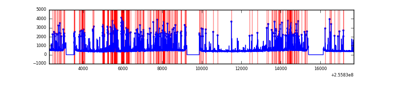 Red curve is a Poisson curve with rate = median count rate of data. |