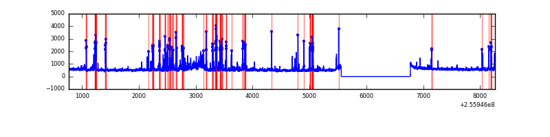 Red curve is a Poisson curve with rate = median count rate of data. |